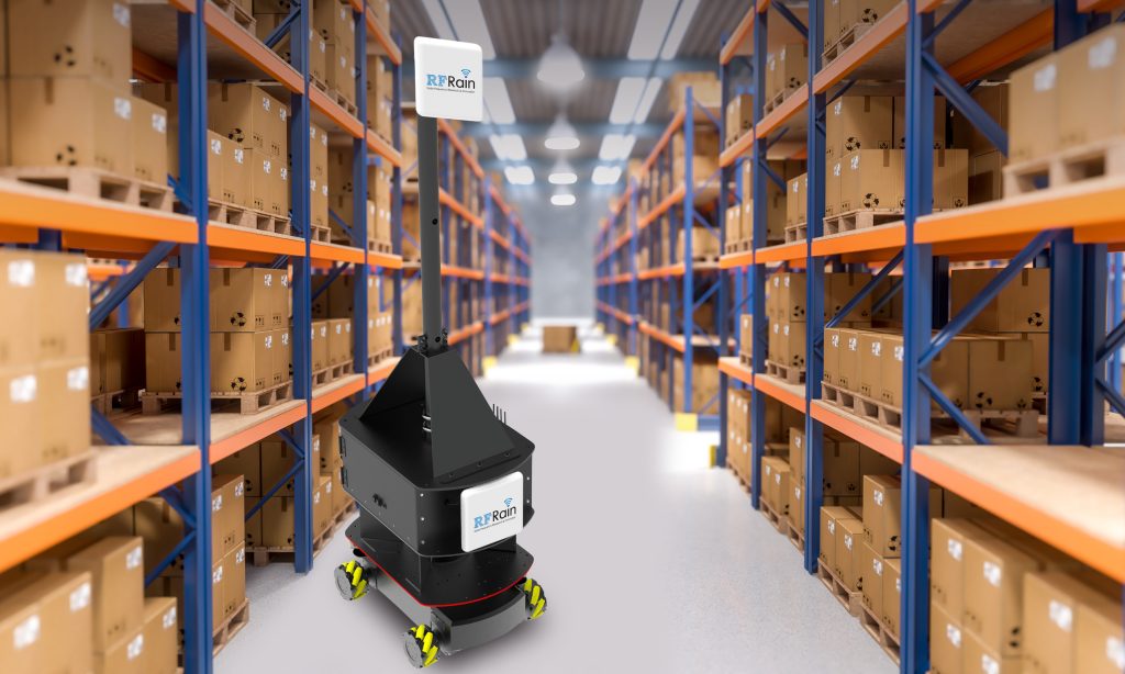 RFRain installed an RFR-RAIN-4-SMART-ADV reader with a battery on an Inventory count AMR, and controlled the