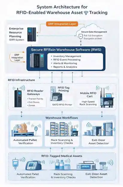 At the physical level, organizations require fixed RFID readers positioned at key transition points such as warehouse doors, dock doors, and transit areas. These readers are responsible for automatically detecting assets as they move in and out of controlled zones, ensuring that all movement is captured without manual intervention.